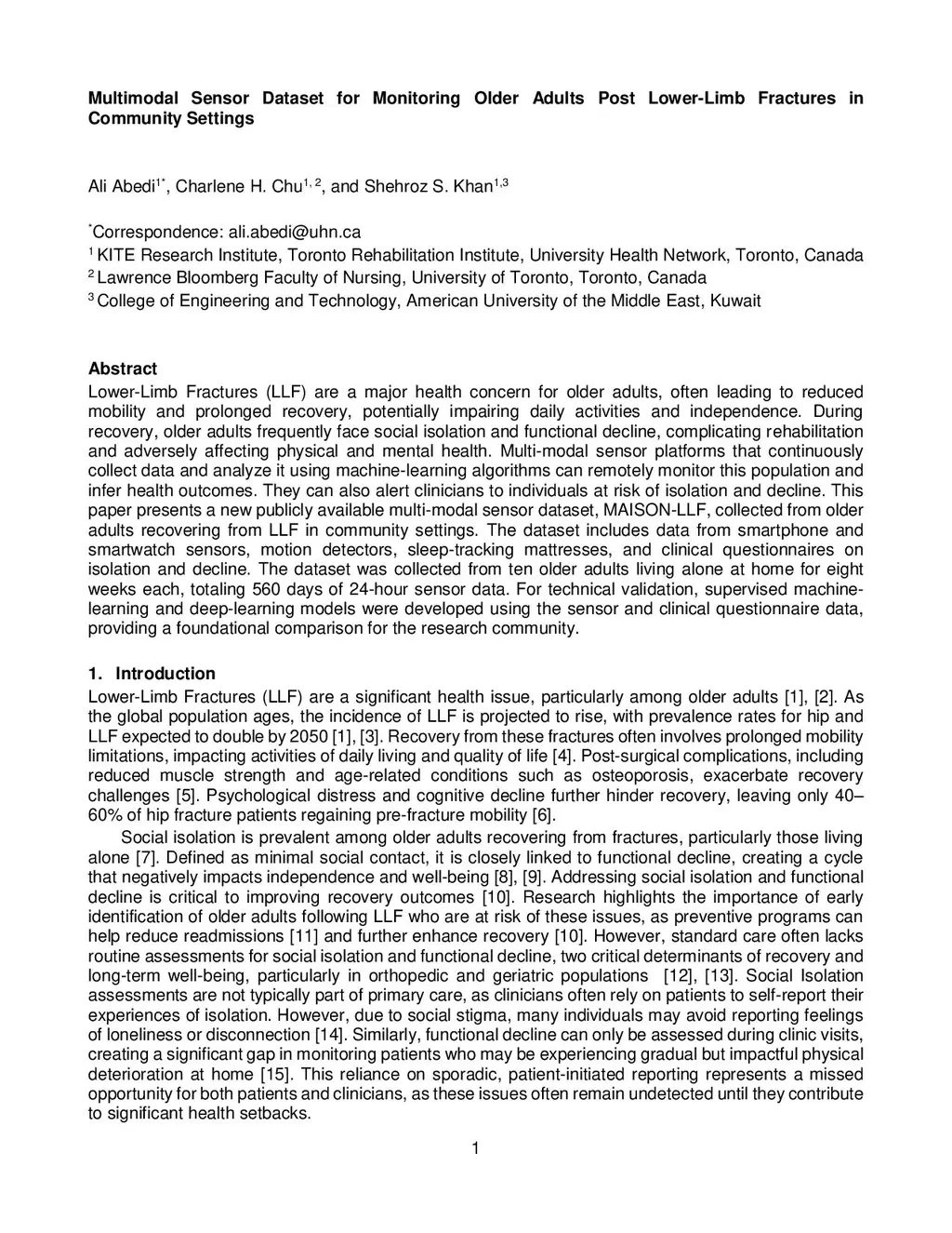 Multimodal Sensor Dataset for Monitoring Older Adults Post Lower-Limb Fractures in Community Settings