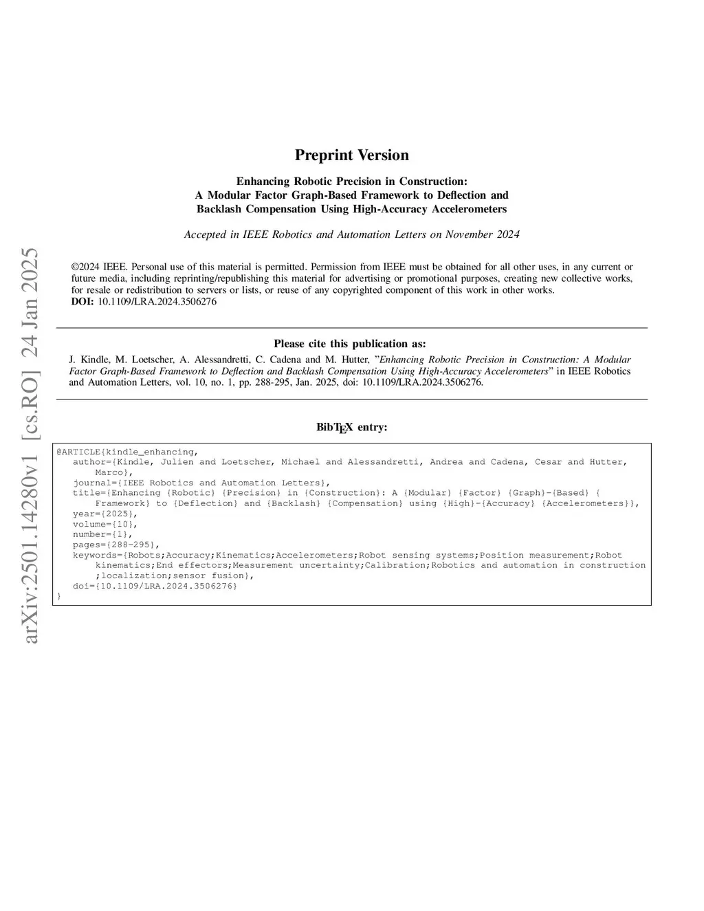 Enhancing Robotic Precision in Construction: A Modular Factor Graph-Based Framework to Deflection and Backlash Compensation Using High-Accuracy Accelerometers