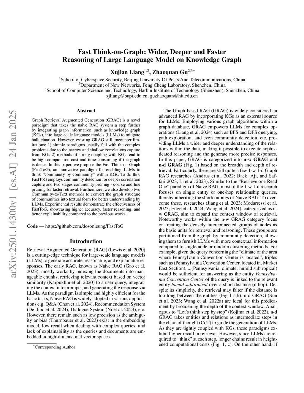 Fast Think-on-Graph: Wider, Deeper and Faster Reasoning of Large Language Model on Knowledge Graph