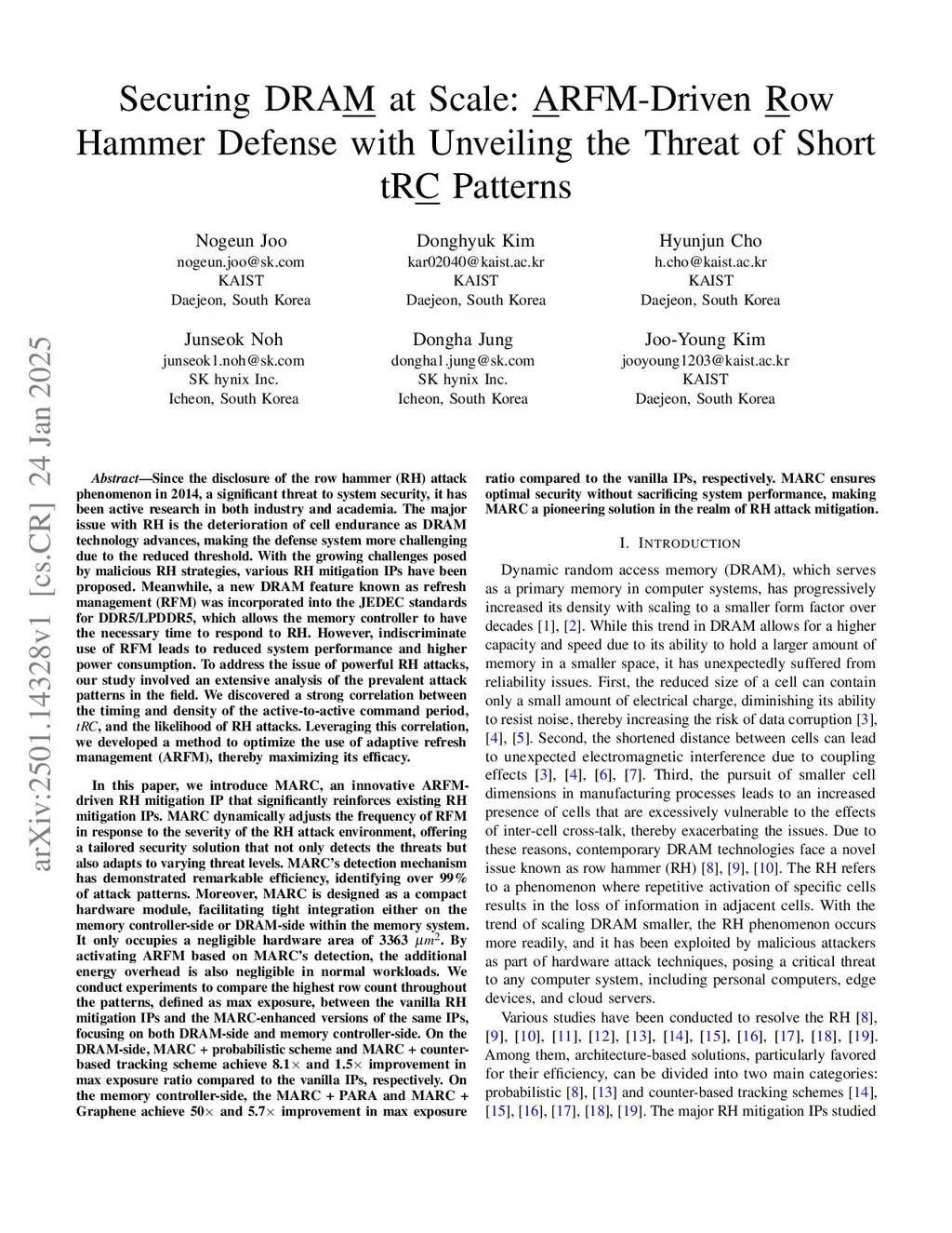 Securing DRAM at Scale: ARFM-Driven Row Hammer Defense with Unveiling the Threat of Short tRC Patterns