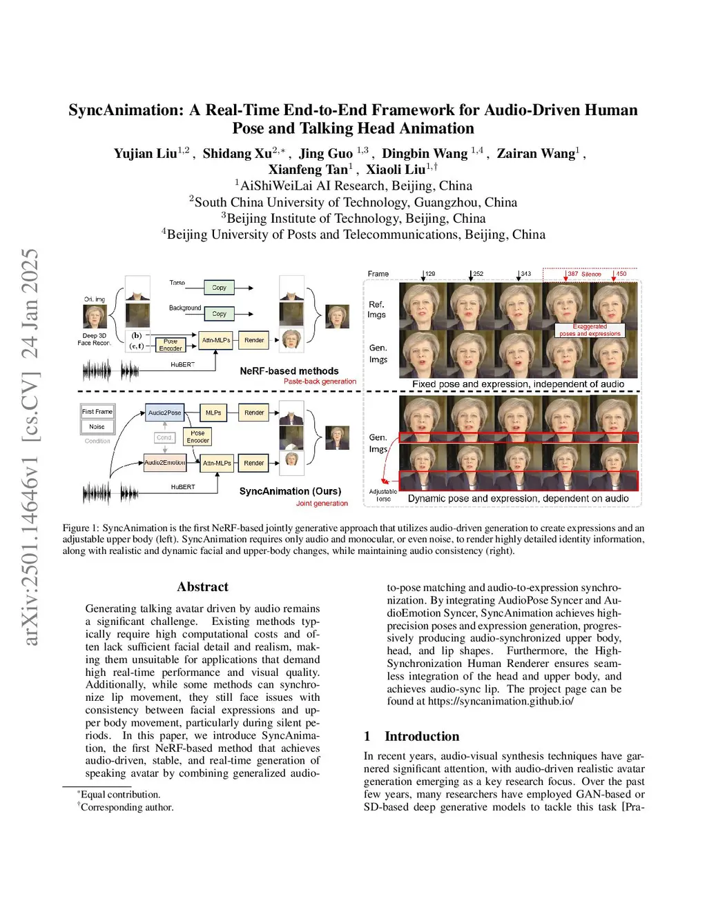 SyncAnimation: A Real-Time End-to-End Framework for Audio-Driven Human Pose and Talking Head Animation