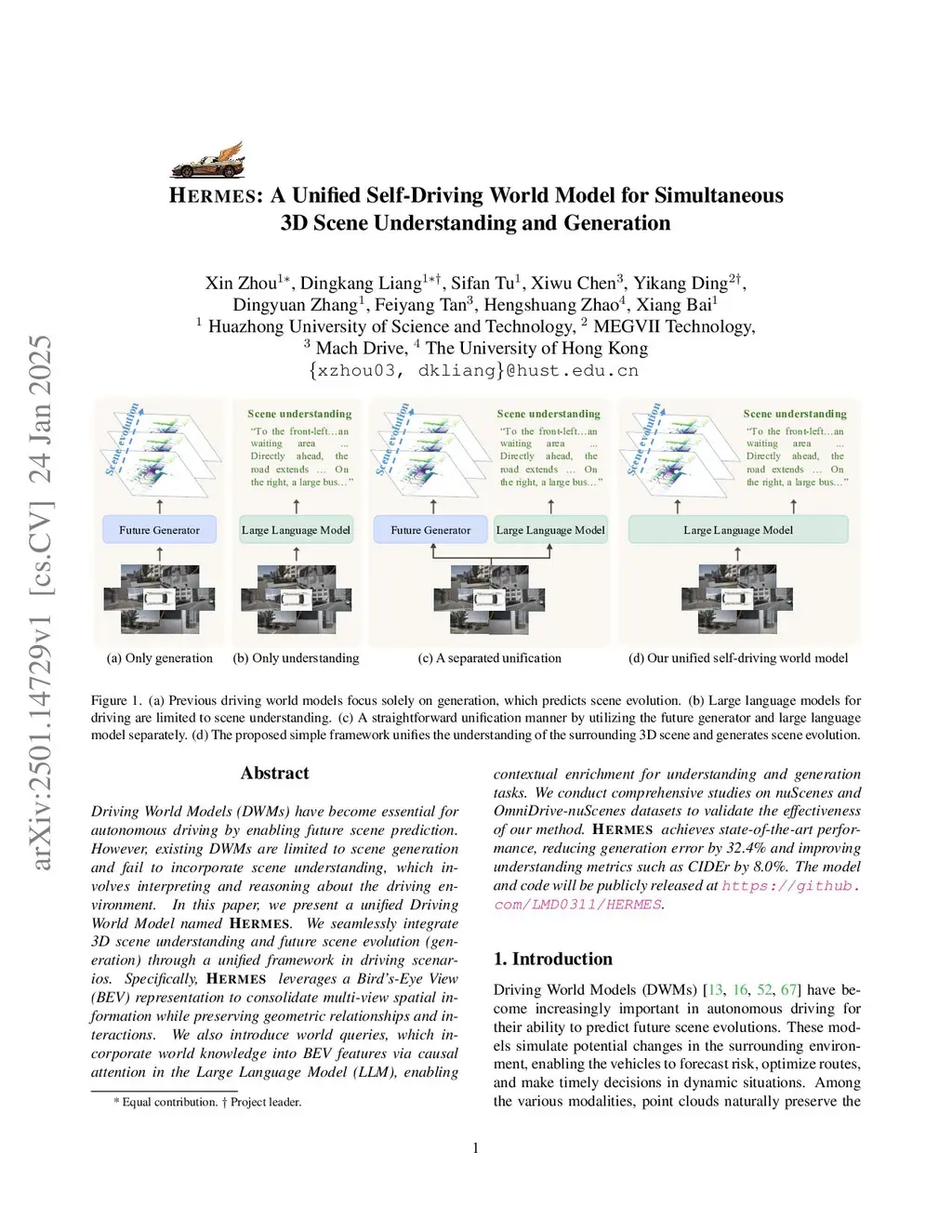 HERMES: A Unified Self-Driving World Model for Simultaneous 3D Scene Understanding and Generation