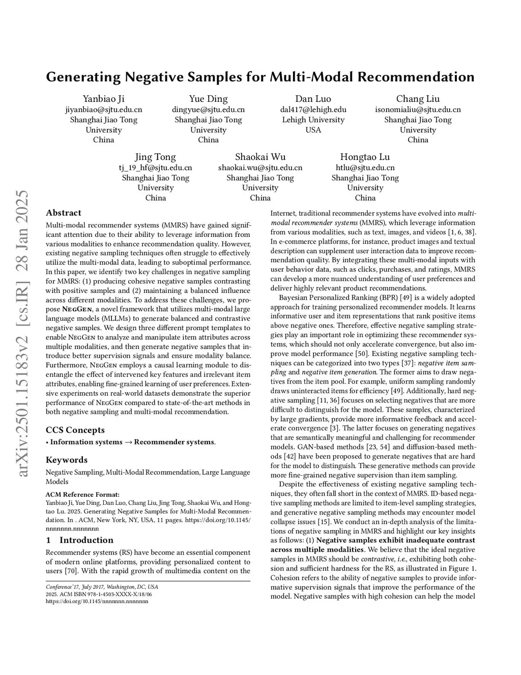 Generating Negative Samples for Multi-Modal Recommendation