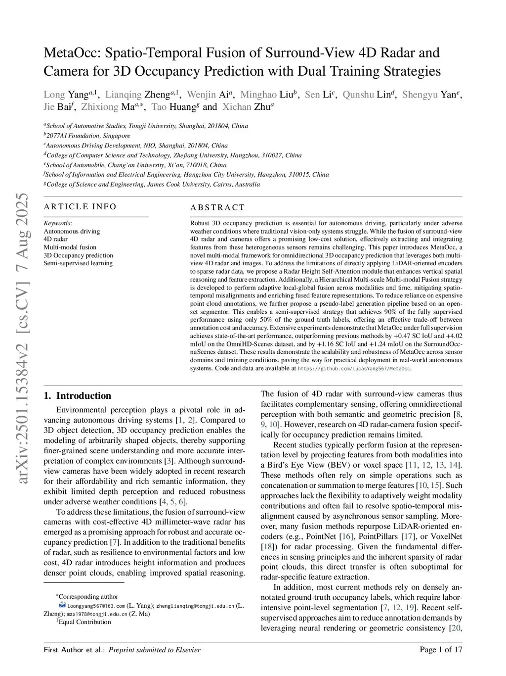 MetaOcc: Spatio-Temporal Fusion of Surround-View 4D Radar and Camera for 3D Occupancy Prediction with Dual Training Strategies