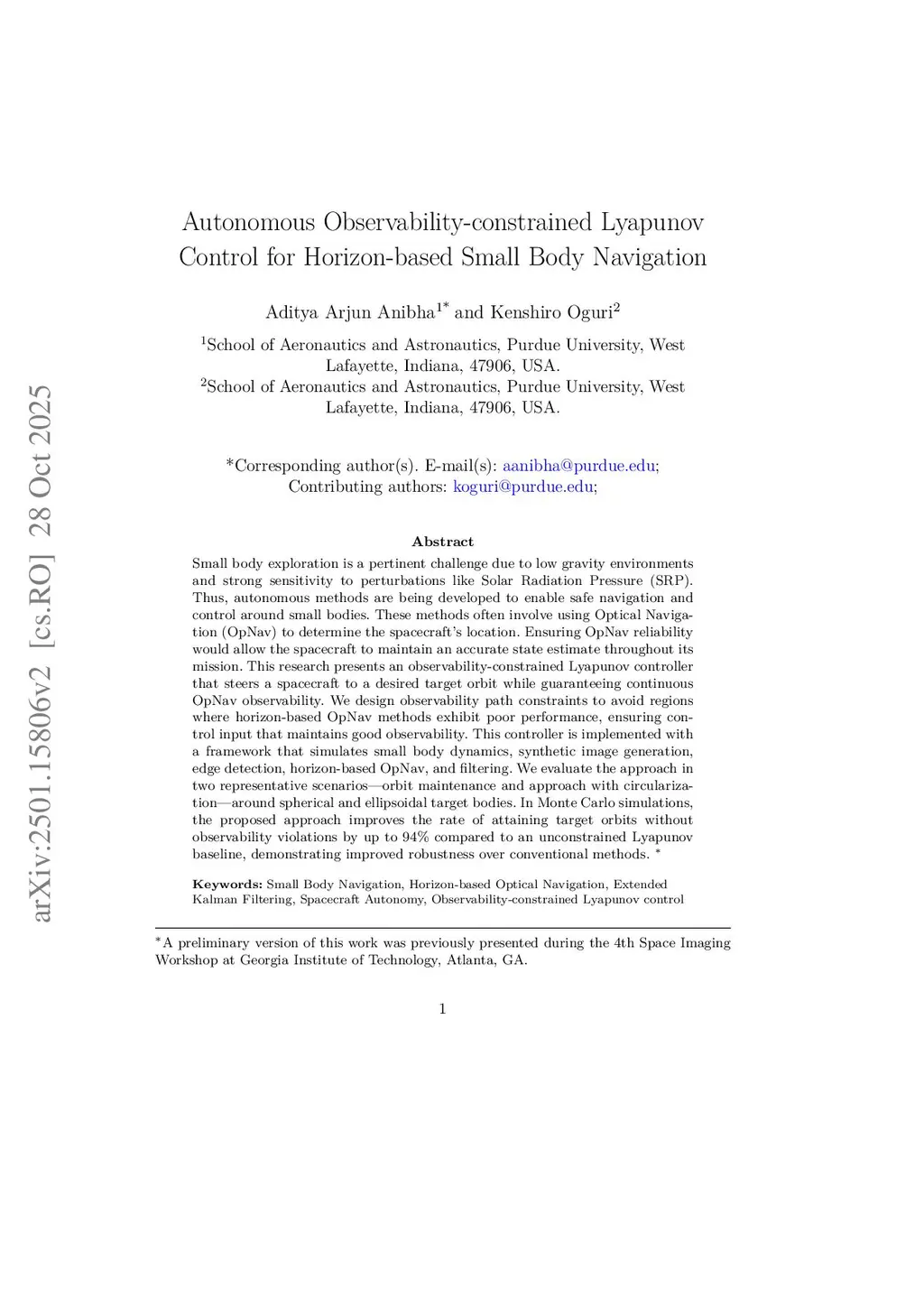Small body exploration is a pertinent challenge due to low gravity environments and strong sensitivity to perturbations like Solar Radiation Pressure (SRP). Thus, autonomous methods are being developed to enable safe navigation and control around small bodies. These methods often involve using Optical Navigation (OpNav) to determine the spacecraft's location. Ensuring OpNav reliability would allow the spacecraft to maintain an accurate state estimate throughout its mission. This research presents an observability-constrained Lyapunov controller that steers a spacecraft to a desired target orbit while guaranteeing continuous OpNav observability. We design observability path constraints to avoid regions where horizon-based OpNav methods exhibit poor performance, ensuring control input that maintains good observability. This controller is implemented with a framework that simulates small body dynamics, synthetic image generation, edge detection, horizon-based OpNav, and filtering. We evaluate the approach in two representative scenarios, orbit maintenance and approach with circularization, around spherical and ellipsoidal target bodies. In Monte Carlo simulations, the proposed approach improves the rate of attaining target orbits without observability violations by up to 94% compared to an unconstrained Lyapunov baseline, demonstrating improved robustness over conventional methods.