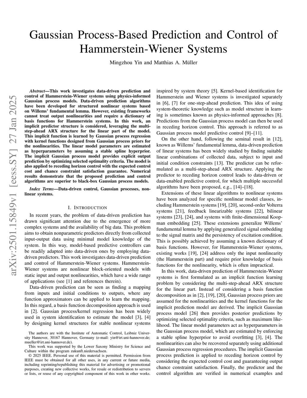 Data-Driven Prediction and Control of Hammerstein-Wiener Systems with Implicit Gaussian Processes
