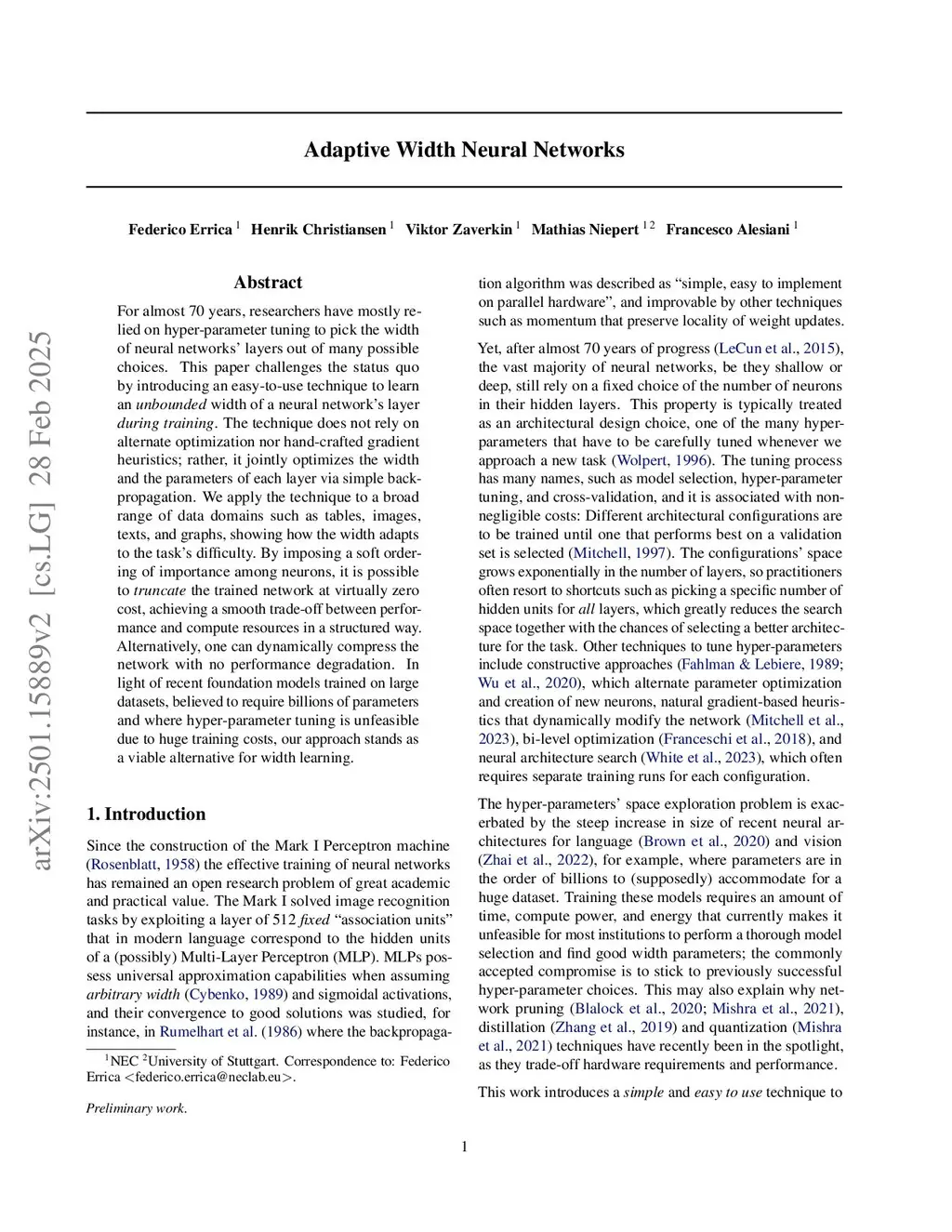 Adaptive Width Neural Networks