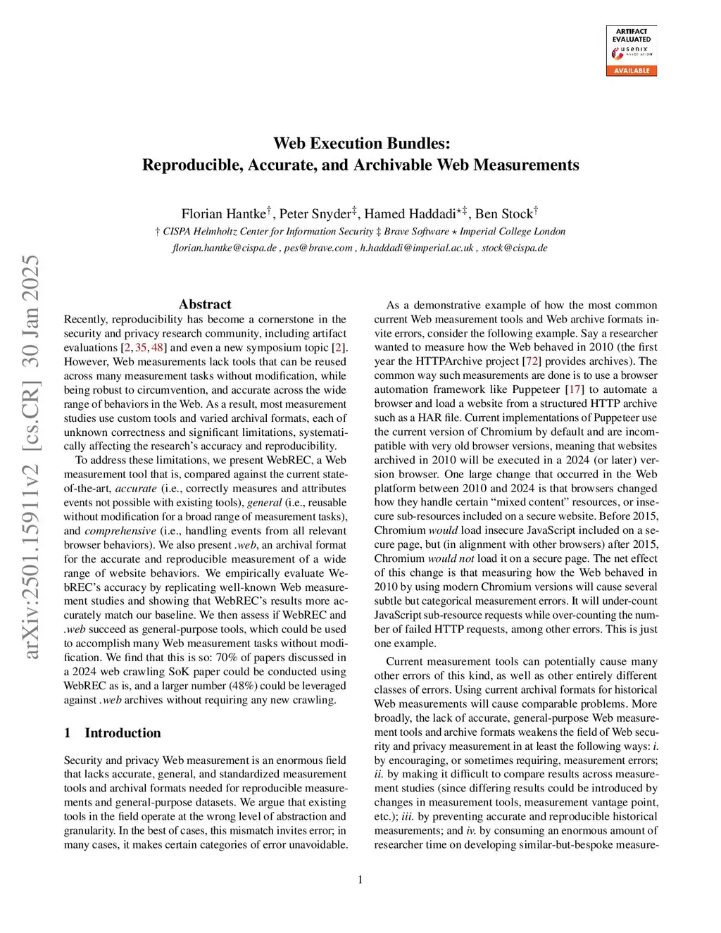 Web Execution Bundles: Reproducible, Accurate, and Archivable Web Measurements
