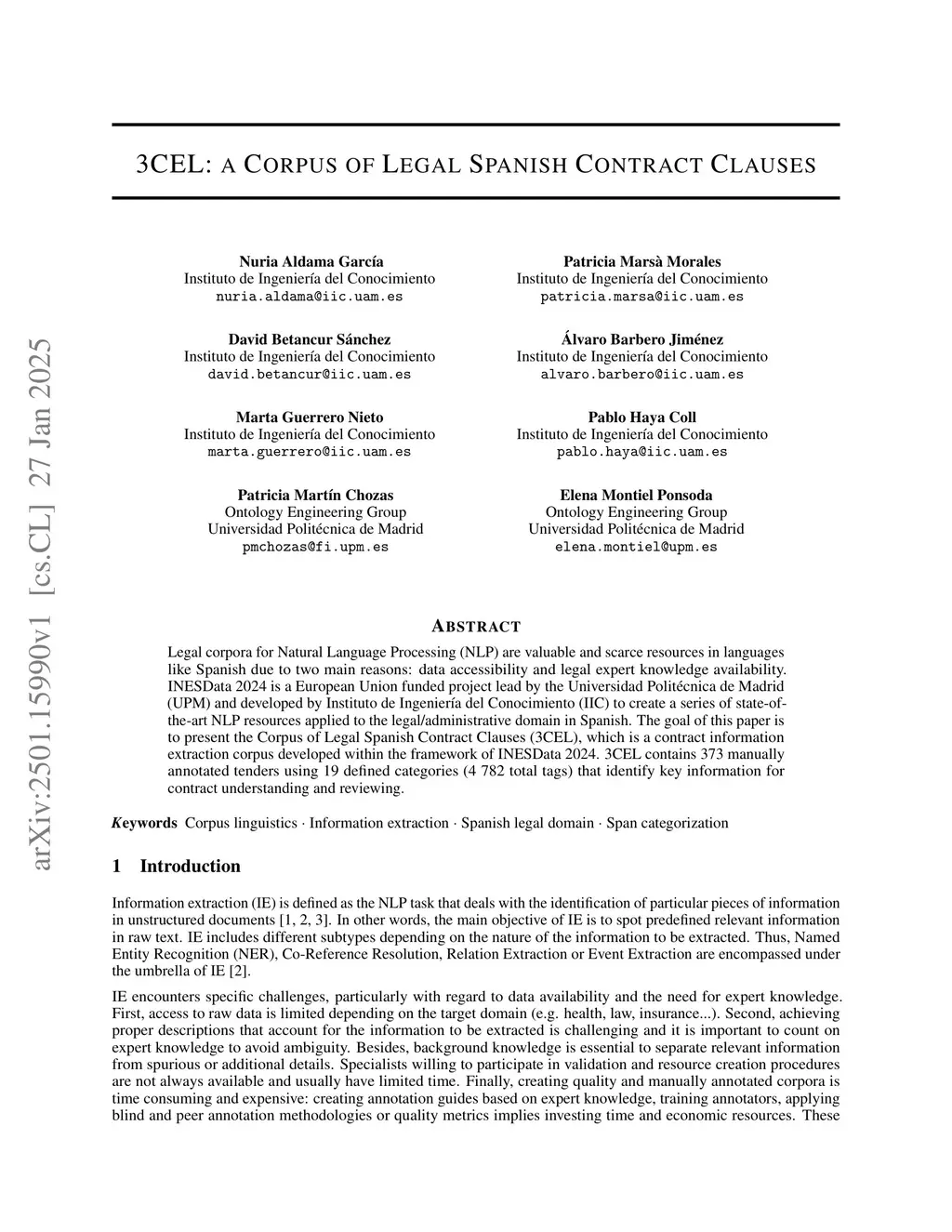 3CEL: A corpus of legal Spanish contract clauses