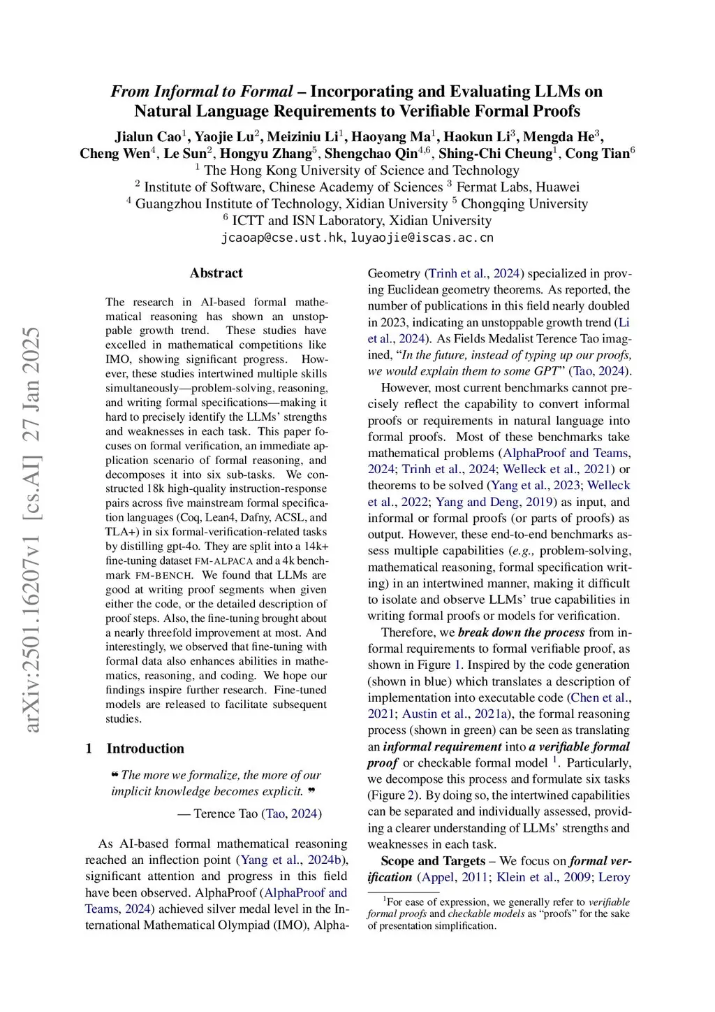 From Informal to Formal -- Incorporating and Evaluating LLMs on Natural Language Requirements to Verifiable Formal Proofs
