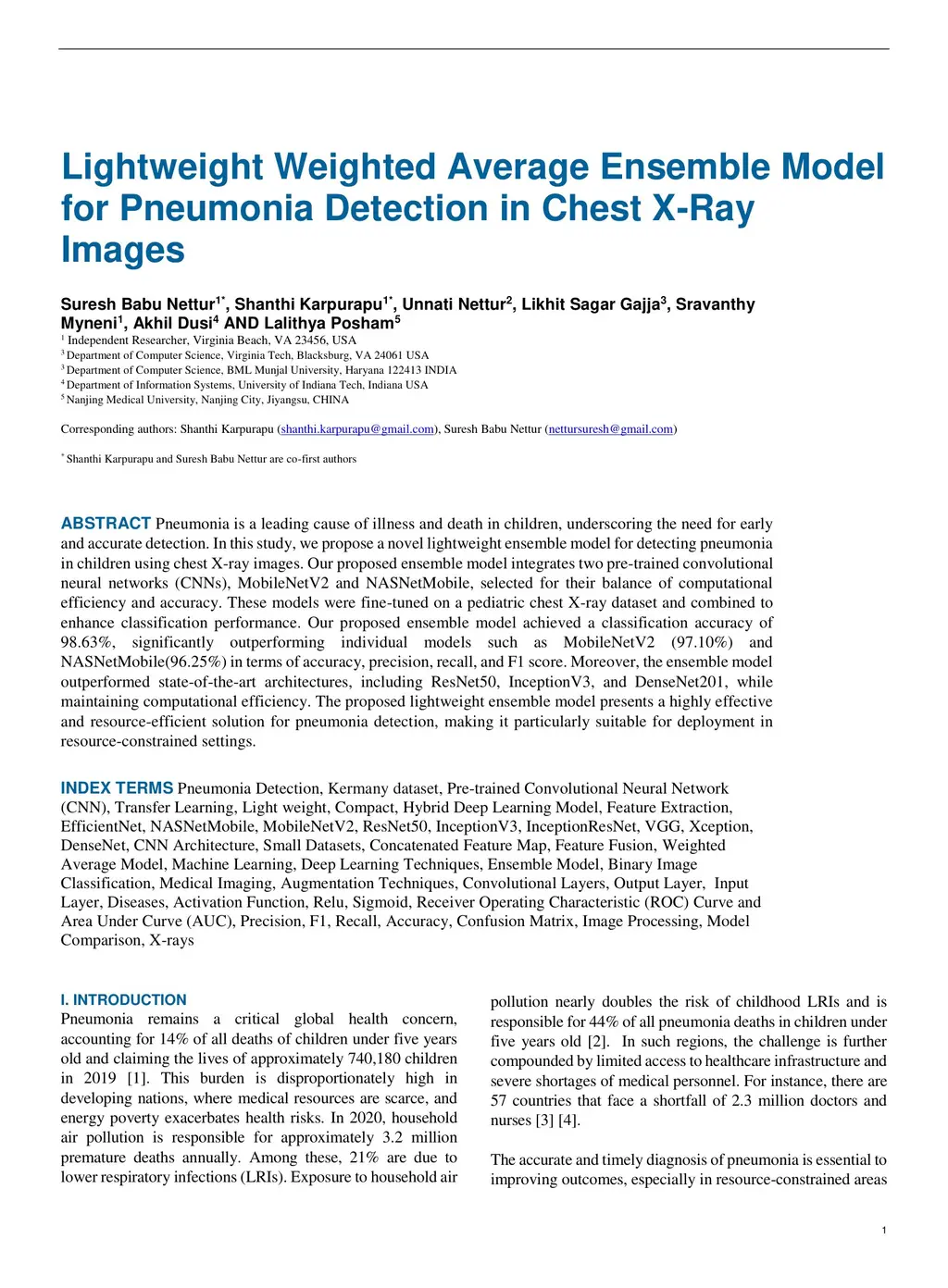 Lightweight Weighted Average Ensemble Model for Pneumonia Detection in Chest X-Ray Images