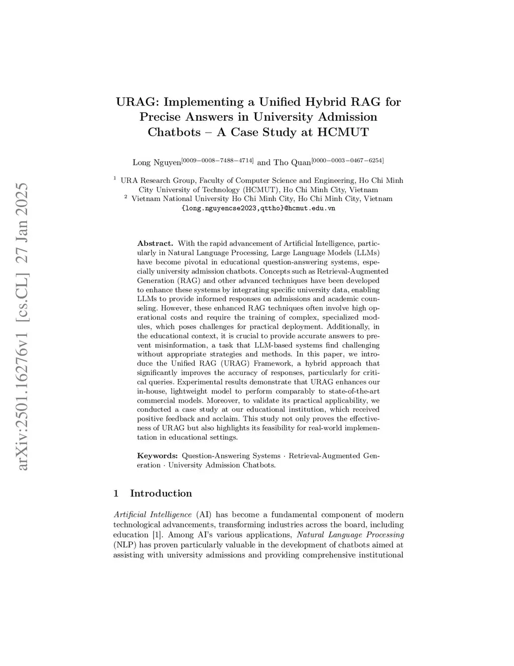 URAG: Implementing a Unified Hybrid RAG for Precise Answers in University Admission Chatbots -- A Case Study at HCMUT