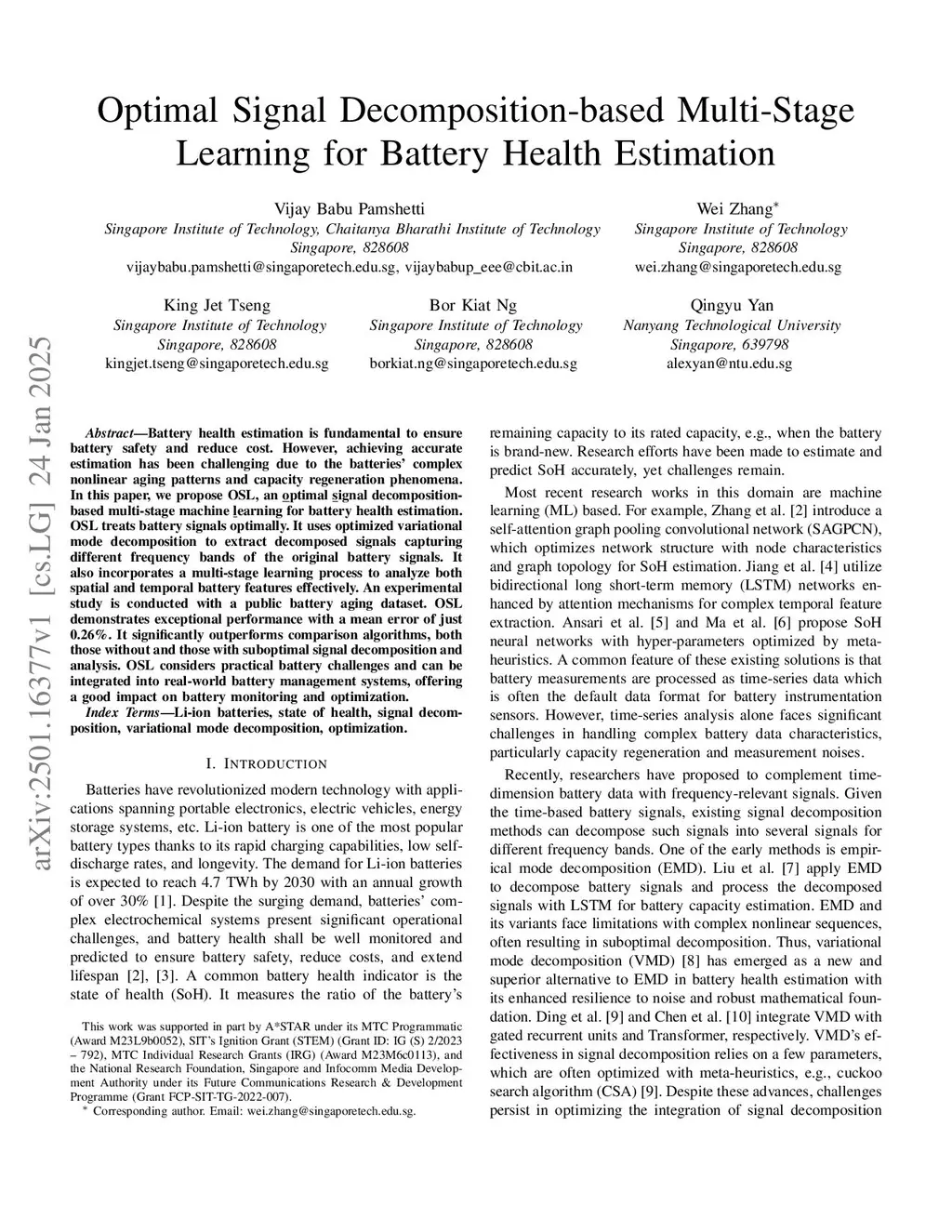 Optimal Signal Decomposition-based Multi-Stage Learning for Battery Health Estimation
