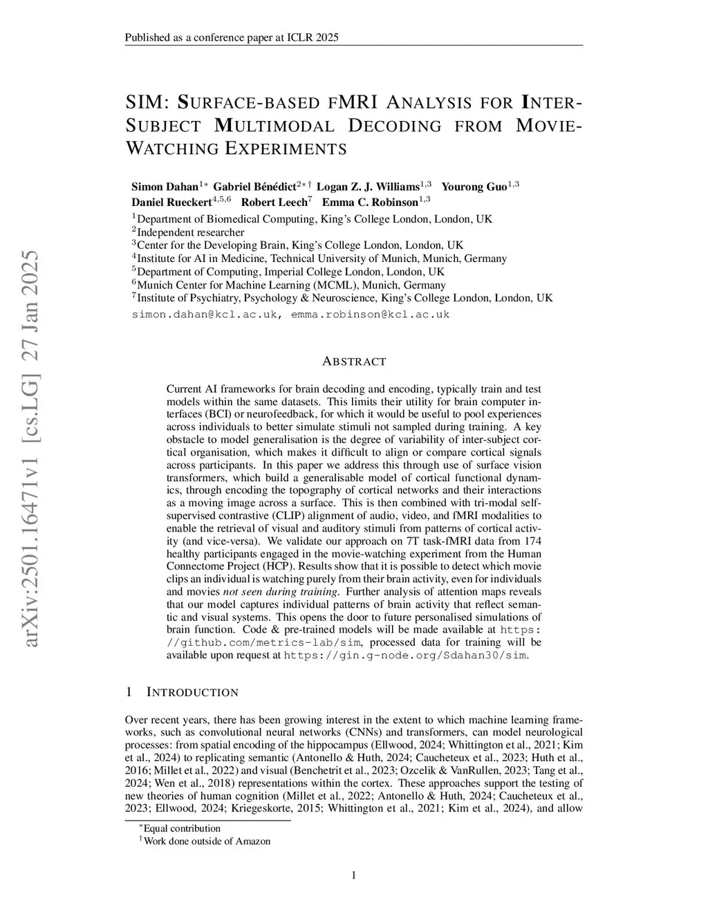 SIM: Surface-based fMRI Analysis for Inter-Subject Multimodal Decoding from Movie-Watching Experiments