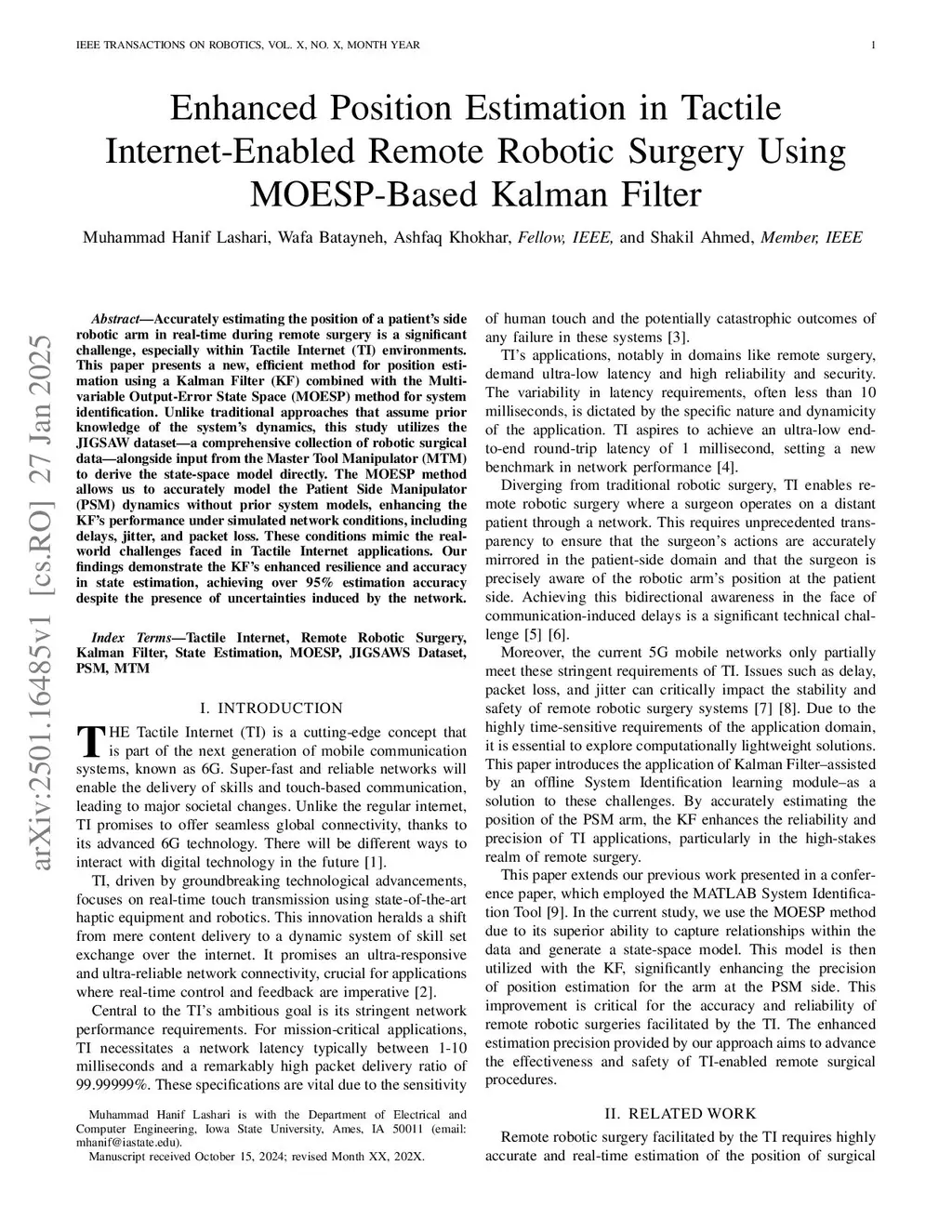 Enhanced Position Estimation in Tactile Internet-Enabled Remote Robotic Surgery Using MOESP-Based Kalman Filter