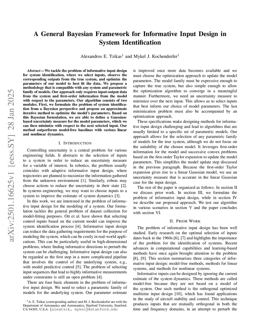 We tackle the problem of informative input design for system identification, where we select inputs, observe the corresponding outputs from the true system, and optimize the parameters of our model to best fit the data. We propose a methodology that is compatible with any system and parametric family of models. Our approach only requires input-output data from the system and first-order information from the model with respect to the parameters. Our algorithm consists of two modules. First, we formulate the problem of system identification from a Bayesian perspective and propose an approximate iterative method to optimize the model's parameters. Based on this Bayesian formulation, we are able to define a Gaussian-based uncertainty measure for the model parameters, which we can then minimize with respect to the next selected input. Our method outperforms model-free baselines with various linear and nonlinear dynamics.