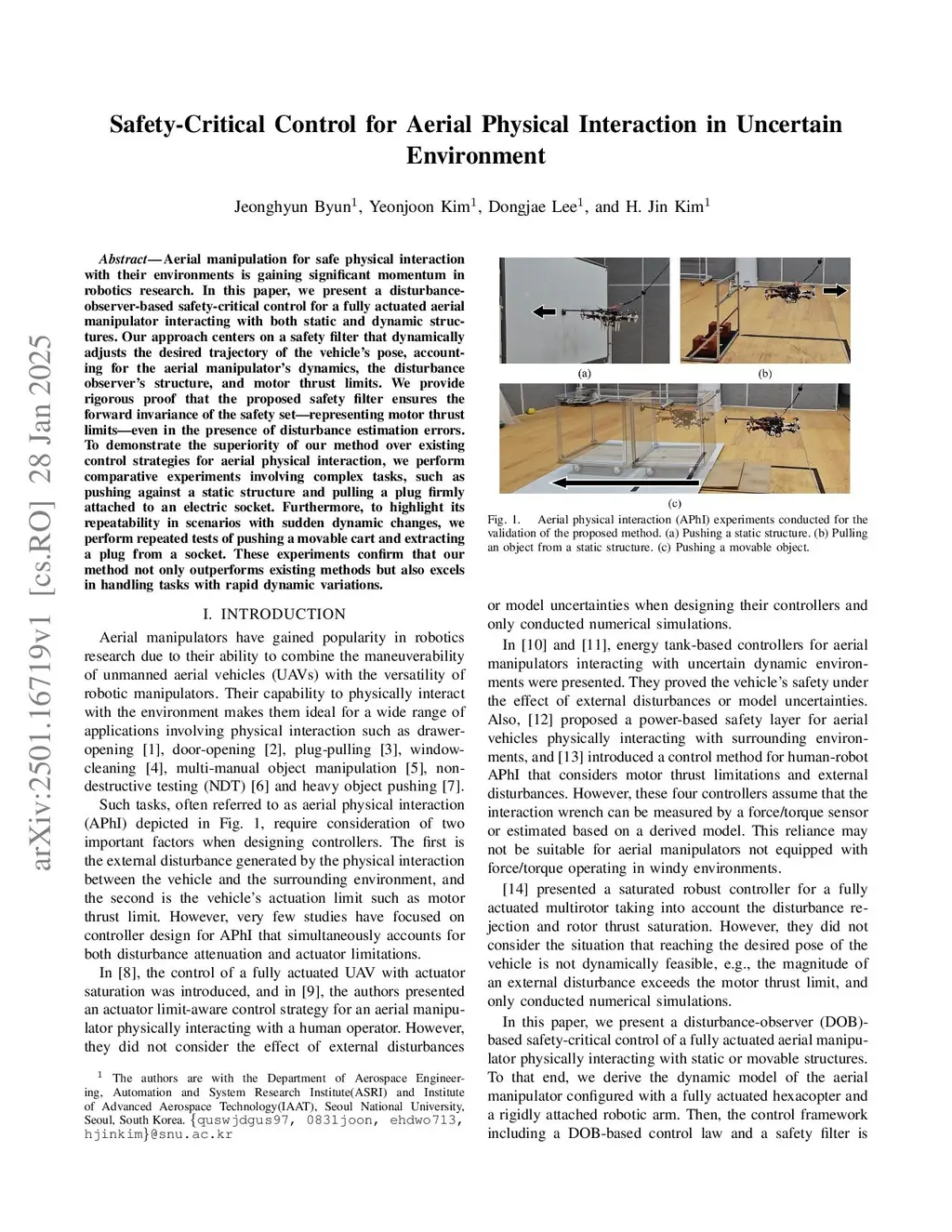 Safety-Critical Control for Aerial Physical Interaction in Uncertain Environment