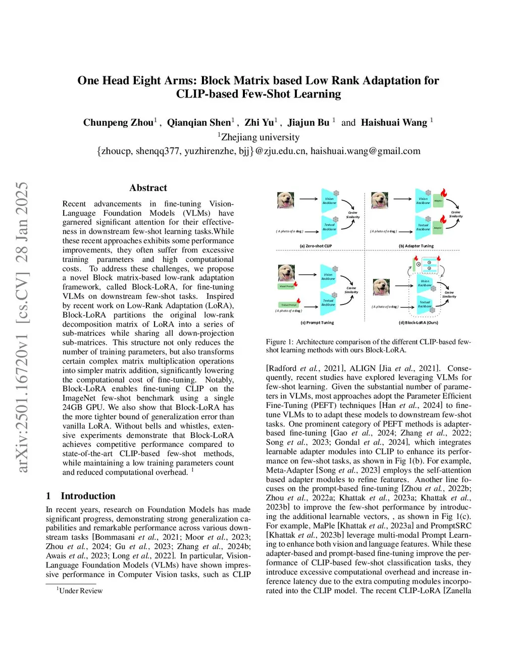 One Head Eight Arms: Block Matrix based Low Rank Adaptation for CLIP-based Few-Shot Learning