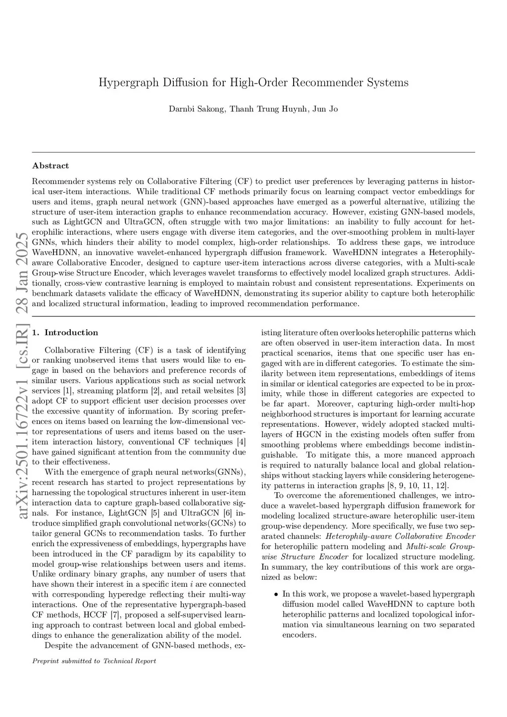 Hypergraph Diffusion for High-Order Recommender Systems