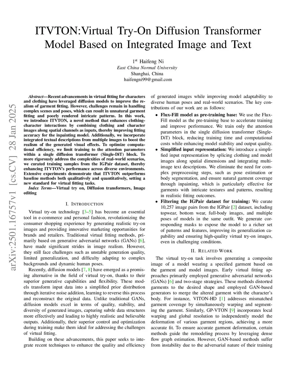 ITVTON: Virtual Try-On Diffusion Transformer Based on Integrated Image and Text