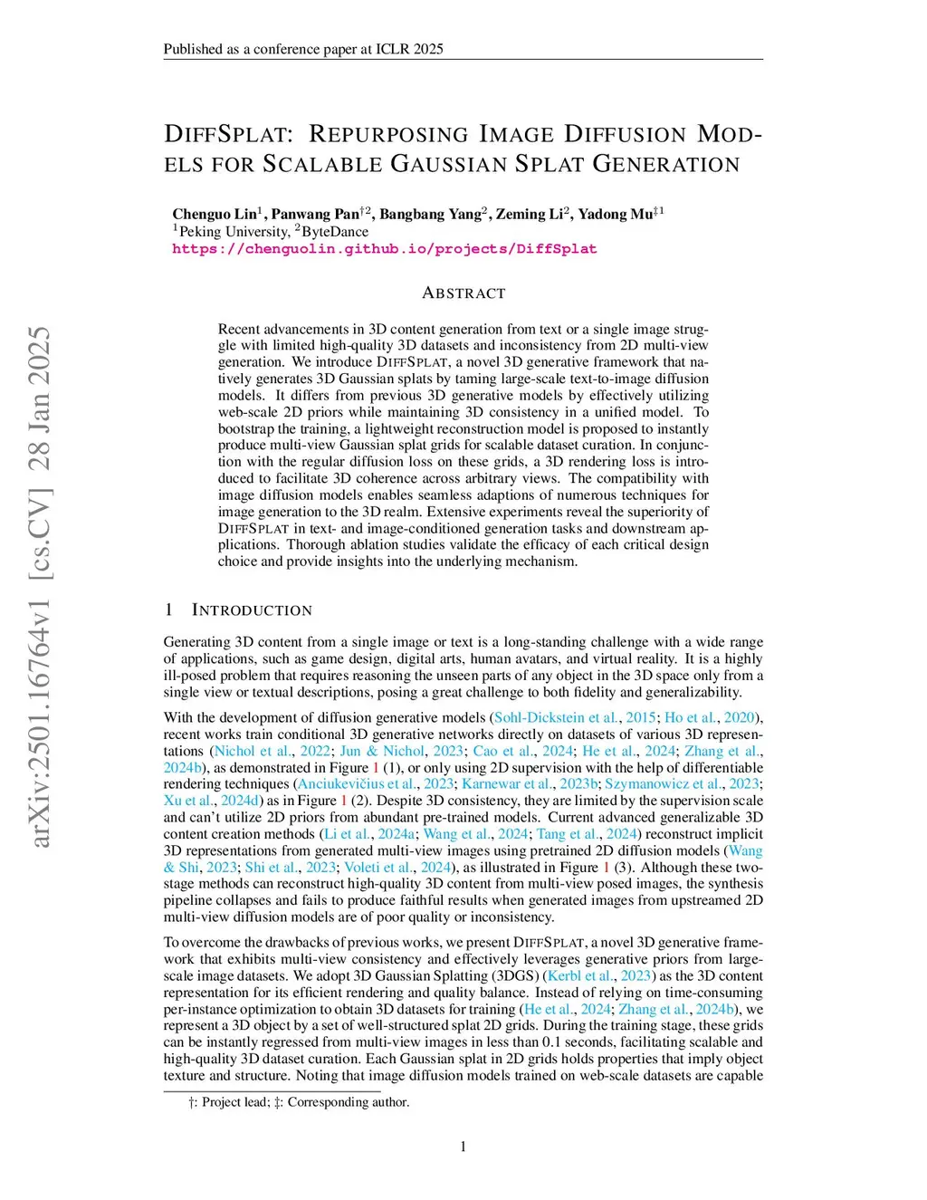 DiffSplat: Repurposing Image Diffusion Models for Scalable Gaussian Splat Generation