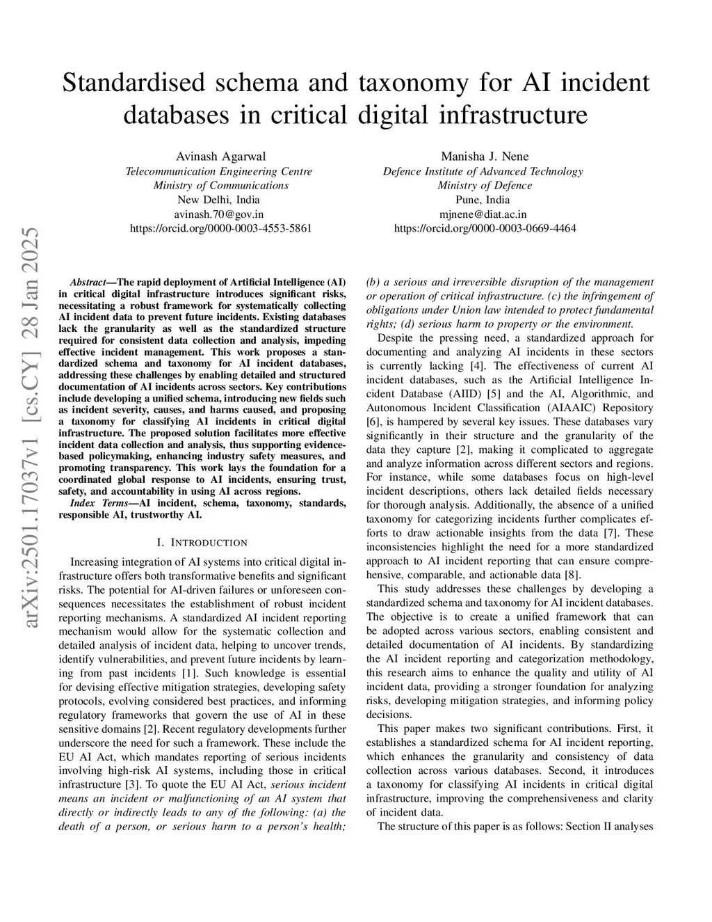 Standardised schema and taxonomy for AI incident databases in critical digital infrastructure