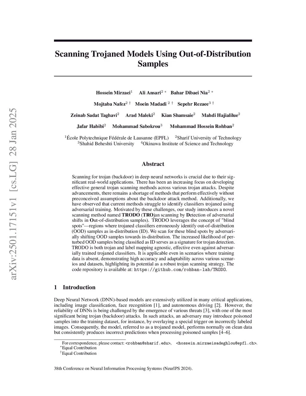 Scanning Trojaned Models Using Out-of-Distribution Samples