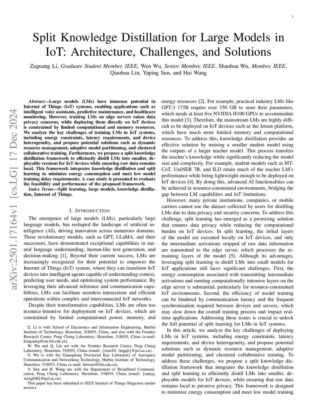 Split Knowledge Distillation for Large Models in IoT: Architecture, Challenges, and Solutions