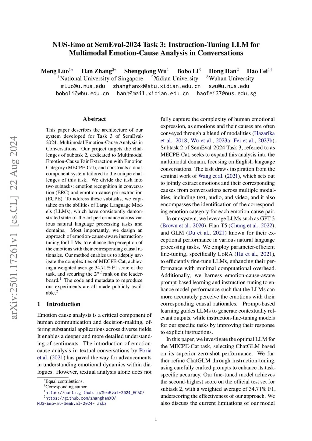 NUS-Emo at SemEval-2024 Task 3: Instruction-Tuning LLM for Multimodal Emotion-Cause Analysis in Conversations