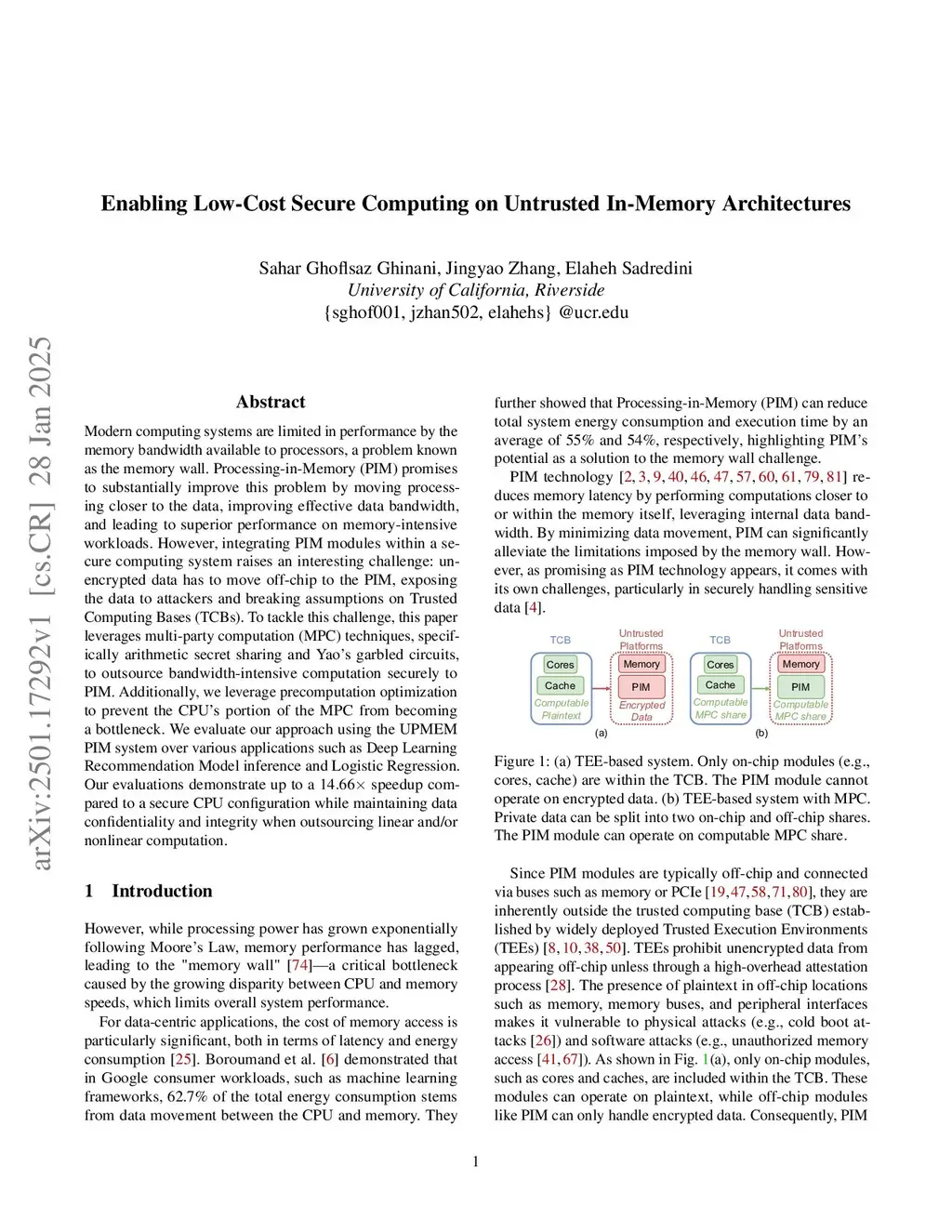Enabling Low-Cost Secure Computing on Untrusted In-Memory Architectures