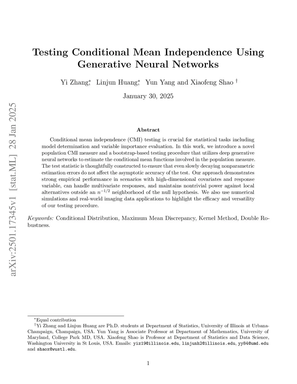 Conditional mean independence (CMI) testing is crucial for statistical tasks including model determination and variable importance evaluation. In this work, we introduce a novel population CMI measure and a bootstrap-based testing procedure that utilizes deep generative neural networks to estimate the conditional mean functions involved in the population measure. The test statistic is thoughtfully constructed to ensure that even slowly decaying nonparametric estimation errors do not affect the asymptotic accuracy of the test. Our approach demonstrates strong empirical performance in scenarios with high-dimensional covariates and response variable, can handle multivariate responses, and maintains nontrivial power against local alternatives outside an neighborhood of the null hypothesis. We also use numerical simulations and real-world imaging data applications to highlight the efficacy and versatility of our testing procedure.