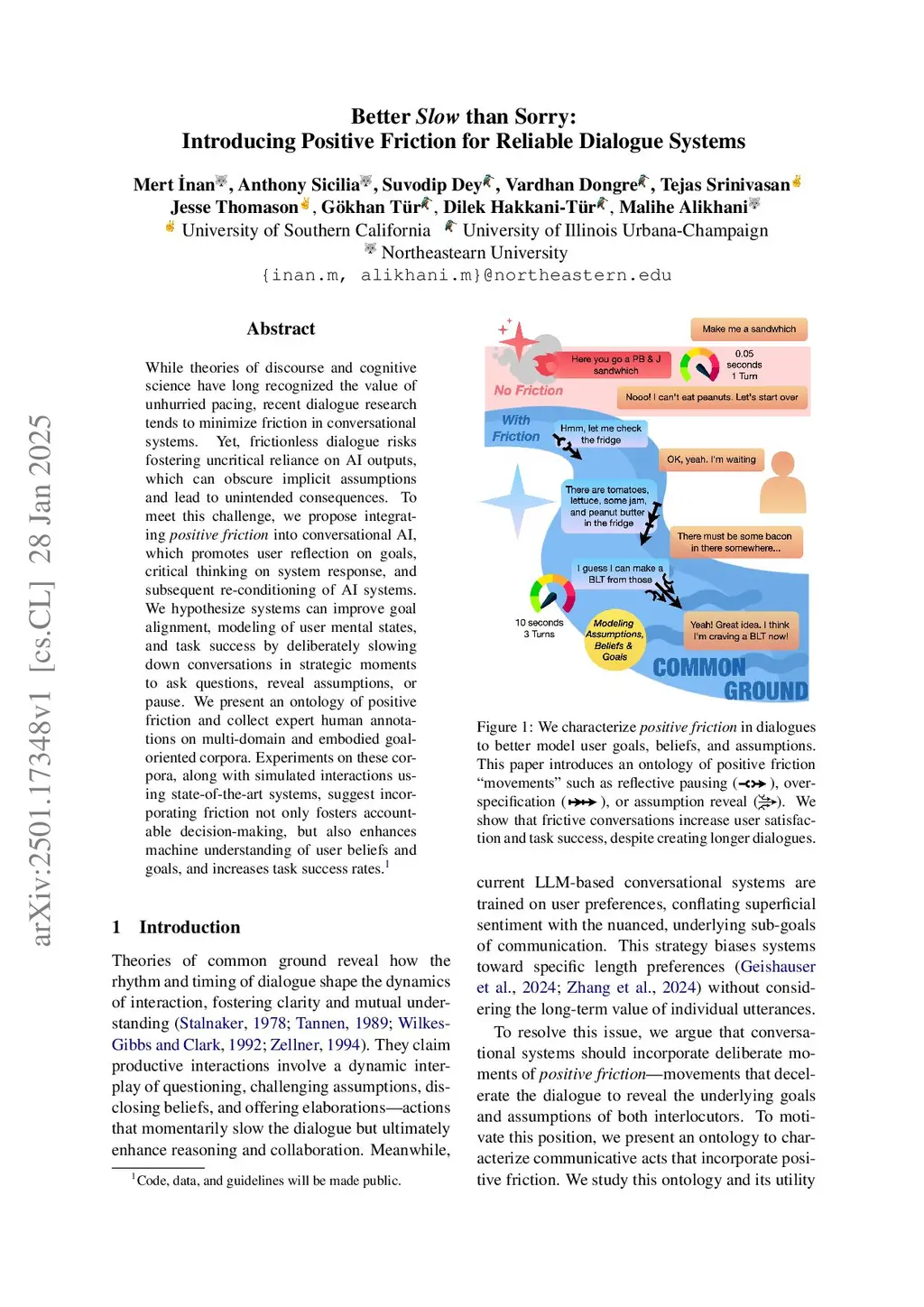 Better Slow than Sorry: Introducing Positive Friction for Reliable Dialogue Systems