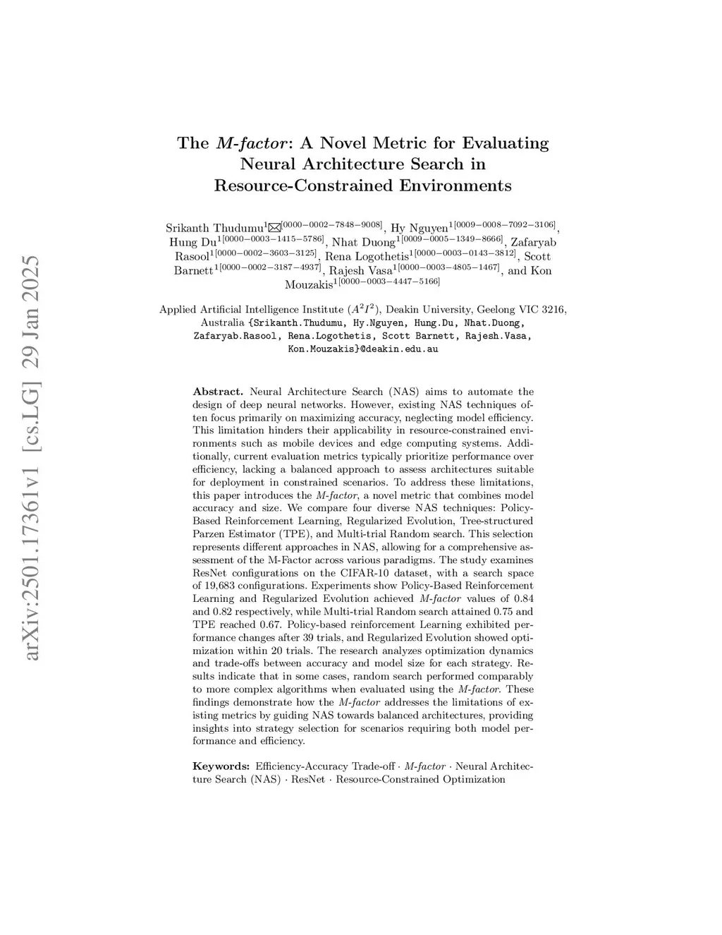 The M-factor: A Novel Metric for Evaluating Neural Architecture Search in Resource-Constrained Environments