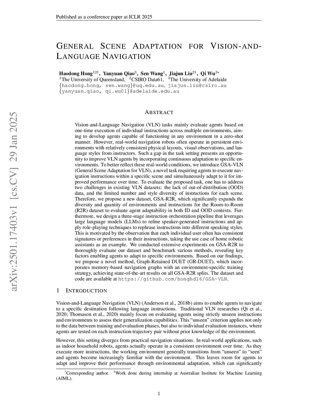 Vision-and-Language Navigation (VLN) tasks mainly evaluate agents based on one-time execution of individual instructions across multiple environments, aiming to develop agents capable of functioning in any environment in a zero-shot manner. However, real-world navigation robots often operate in persistent environments with relatively consistent physical layouts, visual observations, and language styles from instructors. Such a gap in the task setting presents an opportunity to improve VLN agents by incorporating continuous adaptation to specific environments. To better reflect these real-world conditions, we introduce GSA-VLN, a novel task requiring agents to execute navigation instructions within a specific scene and simultaneously adapt to it for improved performance over time. To evaluate the proposed task, one has to address two challenges in existing VLN datasets: the lack of OOD data, and the limited number and style diversity of instructions for each scene. Therefore, we propose a new dataset, GSA-R2R, which significantly expands the diversity and quantity of environments and instructions for the R2R dataset to evaluate agent adaptability in both ID and OOD contexts. Furthermore, we design a three-stage instruction orchestration pipeline that leverages LLMs to refine speaker-generated instructions and apply role-playing techniques to rephrase instructions into different speaking styles. This is motivated by the observation that each individual user often has consistent signatures or preferences in their instructions. We conducted extensive experiments on GSA-R2R to thoroughly evaluate our dataset and benchmark various methods. Based on our findings, we propose a novel method, GR-DUET, which incorporates memory-based navigation graphs with an environment-specific training strategy, achieving state-of-the-art results on all GSA-R2R splits.