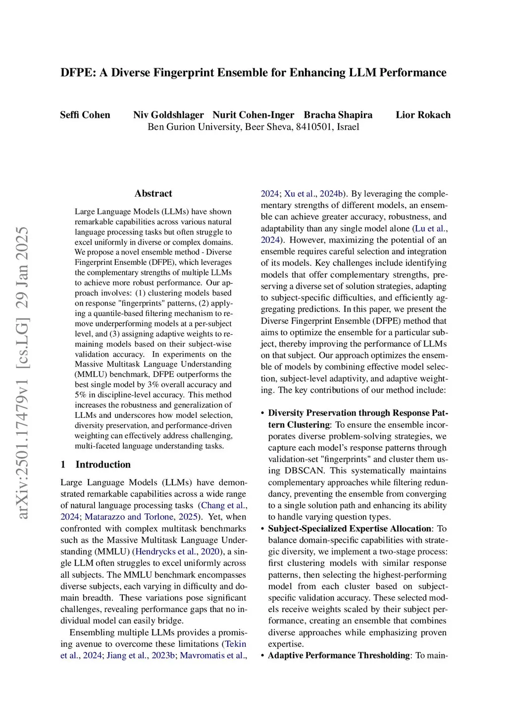 DFPE: A Diverse Fingerprint Ensemble for Enhancing LLM Performance