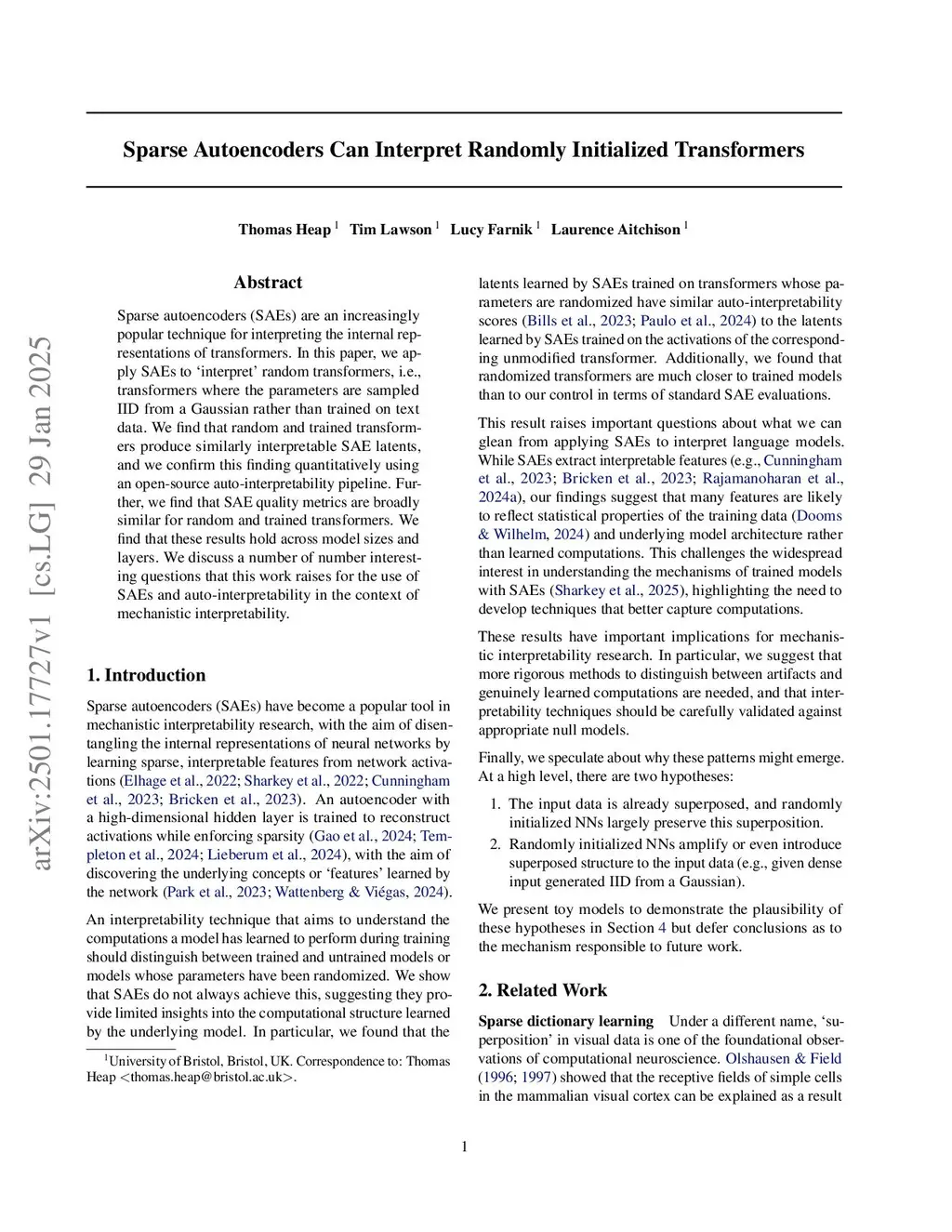 Sparse autoencoders (SAEs) are widely used to extract sparse, interpretable latents from transformer activations. We test whether commonly used SAE quality metrics and automatic explanation pipelines can distinguish trained transformers from randomly initialized ones (e.g., where parameters are sampled i.i.d. from a Gaussian). Over a wide range of Pythia model sizes and multiple randomization schemes, we find that, in many settings, SAEs trained on randomly initialized transformers produce auto-interpretability scores and reconstruction metrics that are similar to those from trained models. These results show that high aggregate auto-interpretability scores do not, by themselves, guarantee that learned, computationally relevant features have been recovered. We therefore recommend treating common SAE metrics as useful but insufficient proxies for mechanistic interpretability and argue for routine randomized baselines and targeted measures of feature ábstractness'.