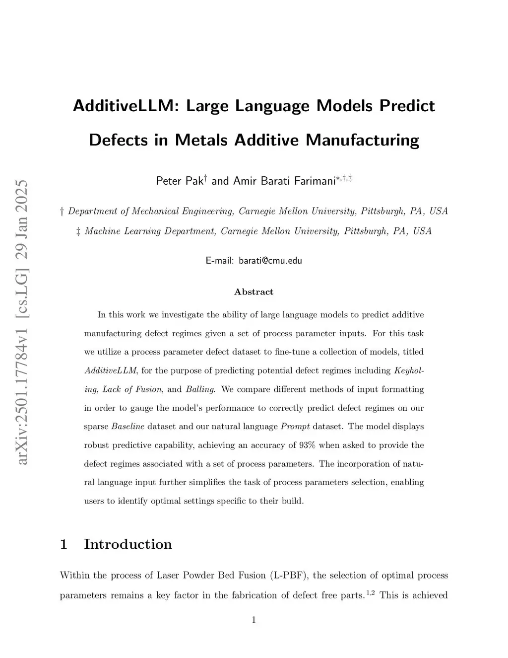 AdditiveLLM: Large Language Models Predict Defects in Additive Manufacturing