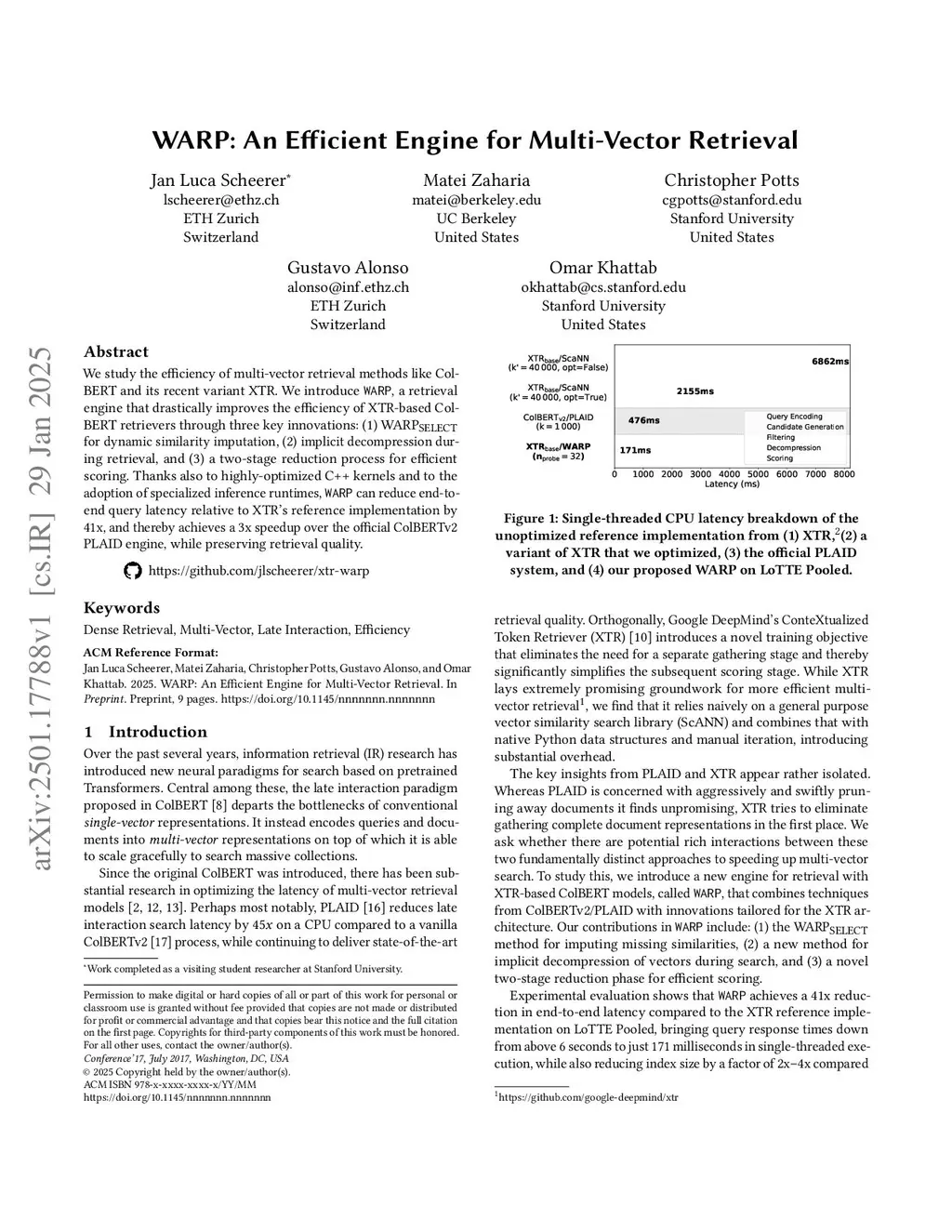 WARP: An Efficient Engine for Multi-Vector Retrieval