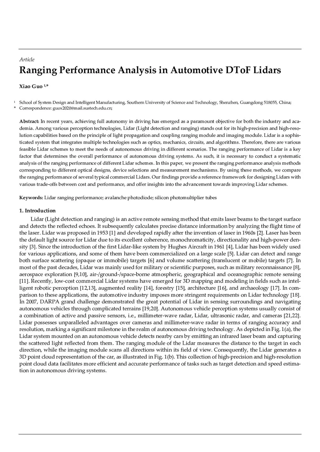 In recent years, achieving full autonomy in driving has emerged as a paramount objective for both the industry and academia. Among various perception technologies, Lidar (Light detection and ranging) stands out for its high-precision and high-resolution capabilities based on the principle of light propagation and coupling ranging module and imaging module. Lidar is a sophisticated system that integrates multiple technologies such as optics, mechanics, circuits, and algorithms. Therefore, there are various feasible Lidar schemes to meet the needs of autonomous driving in different scenarios. The ranging performance of Lidar is a key factor that determines the overall performance of autonomous driving systems. As such, it is necessary to conduct a systematic analysis of the ranging performance of different Lidar schemes. In this paper, we present the ranging performance analysis methods corresponding to different optical designs, device selec-tions and measurement mechanisms. By using these methods, we compare the ranging perfor-mance of several typical commercial Lidars. Our findings provide a reference framework for de-signing Lidars with various trade-offs between cost and performance, and offer insights into the advancement towards improving Lidar schemes.