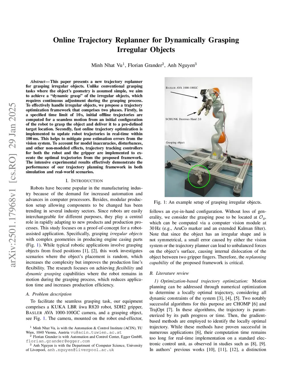 Online Trajectory Replanner for Dynamically Grasping Irregular Objects