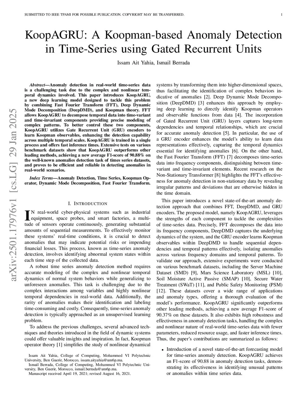 KoopAGRU: A Koopman-based Anomaly Detection in Time-Series using Gated Recurrent Units