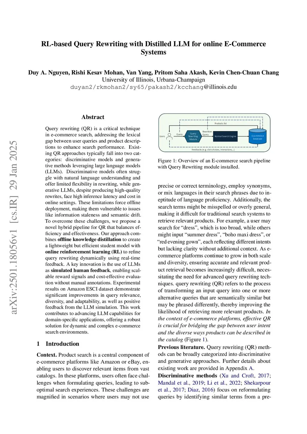 RL-based Query Rewriting with Distilled LLM for online E-Commerce Systems