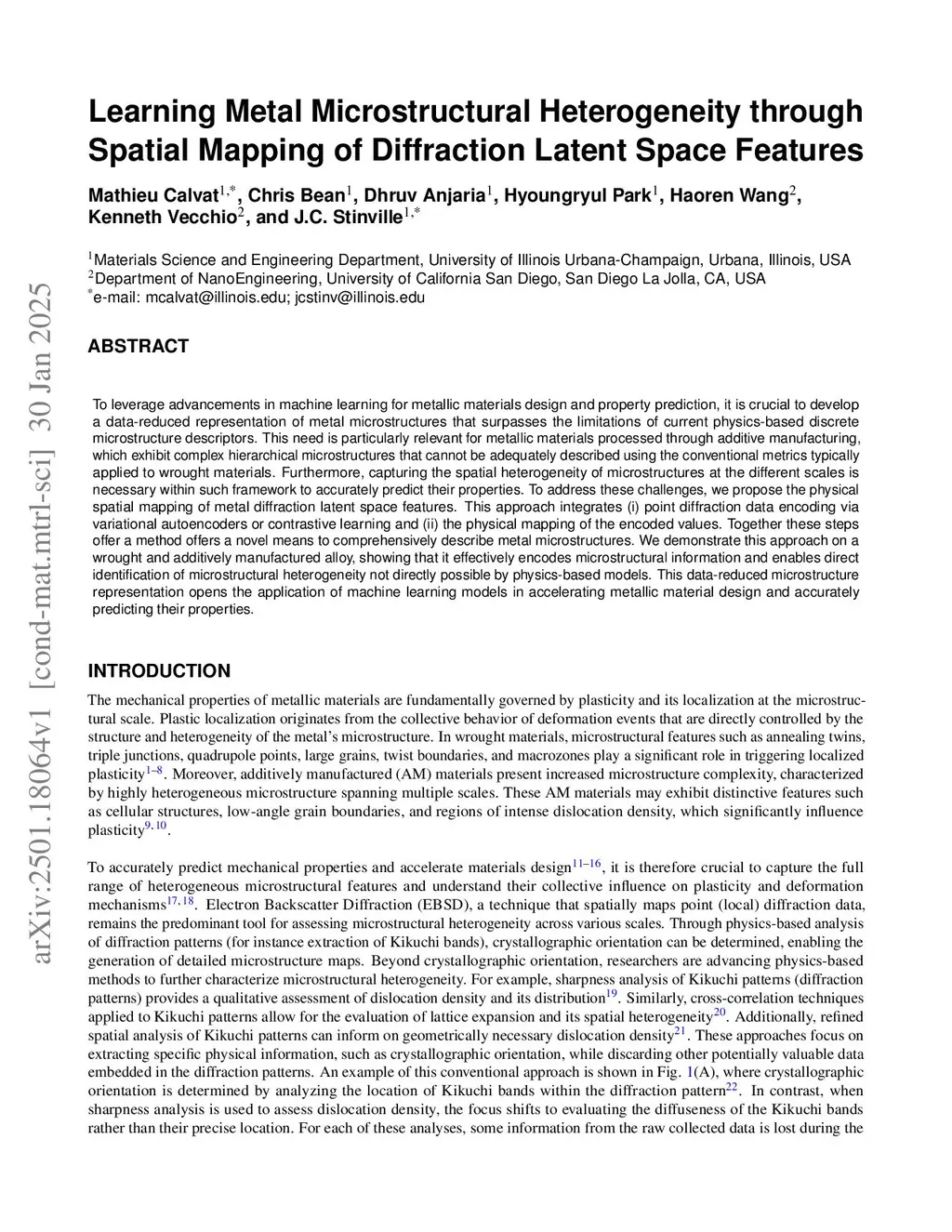 Learning Metal Microstructural Heterogeneity through Spatial Mapping of Diffraction Latent Space Features