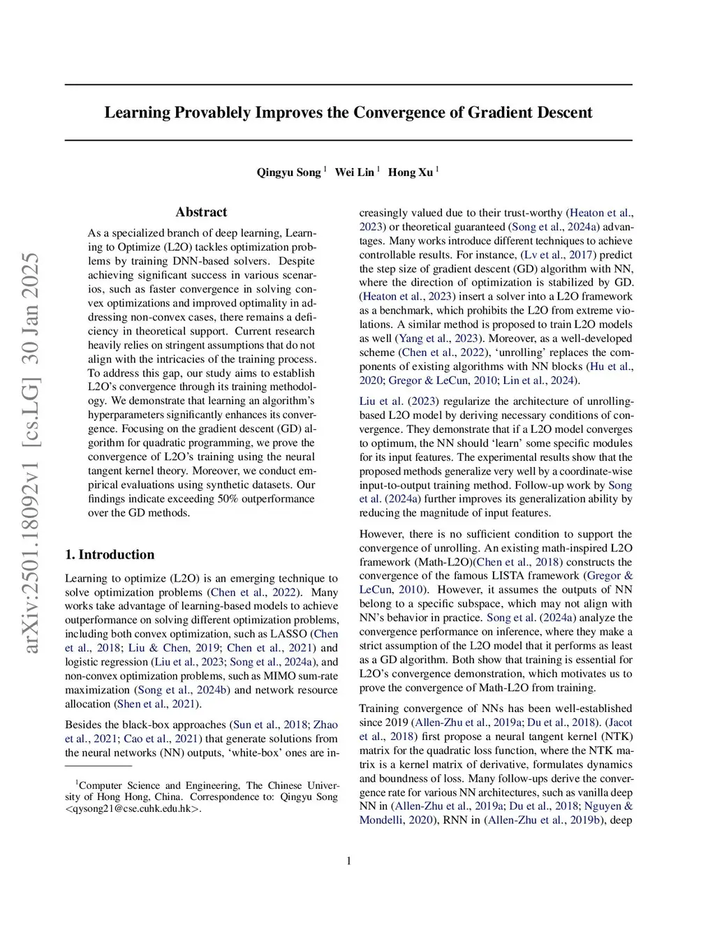 Learning Provably Improves the Convergence of Gradient Descent