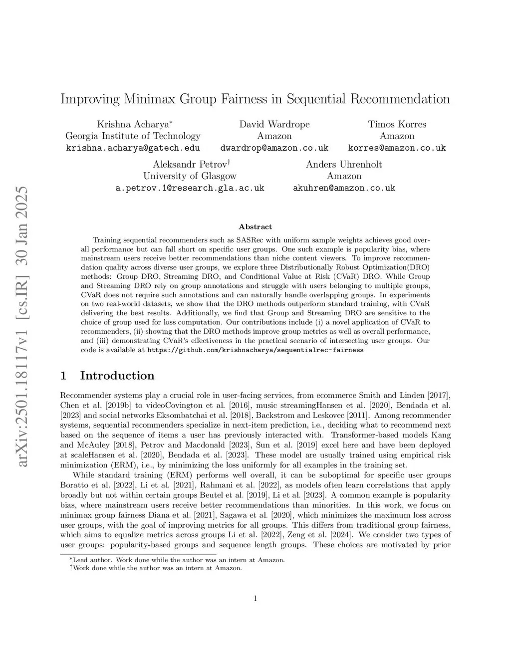 Training sequential recommenders such as SASRec with uniform sample weights achieves good overall performance but can fall short on specific user groups. One such example is popularity bias, where mainstream users receive better recommendations than niche content viewers. To improve recommendation quality across diverse user groups, we explore three Distributionally Robust Optimization(DRO) methods: Group DRO, Streaming DRO, and Conditional Value at Risk (CVaR) DRO. While Group and Streaming DRO rely on group annotations and struggle with users belonging to multiple groups, CVaR does not require such annotations and can naturally handle overlapping groups. In experiments on two real-world datasets, we show that the DRO methods outperform standard training, with CVaR delivering the best results. Additionally, we find that Group and Streaming DRO are sensitive to the choice of group used for loss computation. Our contributions include (i) a novel application of CVaR to recommenders, (ii) showing that the DRO methods improve group metrics as well as overall performance, and (iii) demonstrating CVaR's effectiveness in the practical scenario of intersecting user groups.