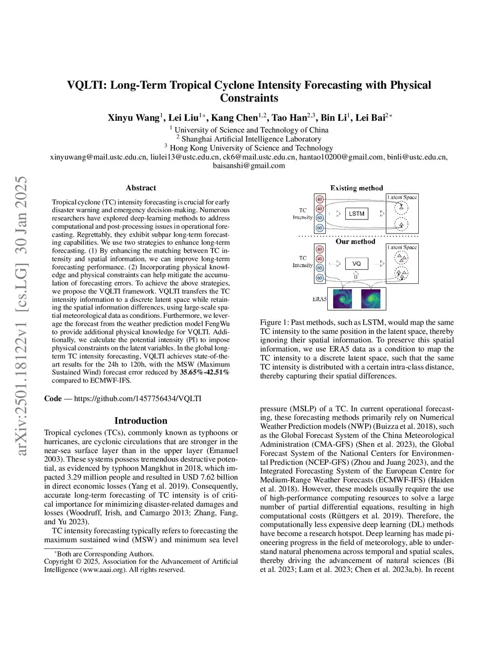 VQLTI: Long-Term Tropical Cyclone Intensity Forecasting with Physical Constraints
