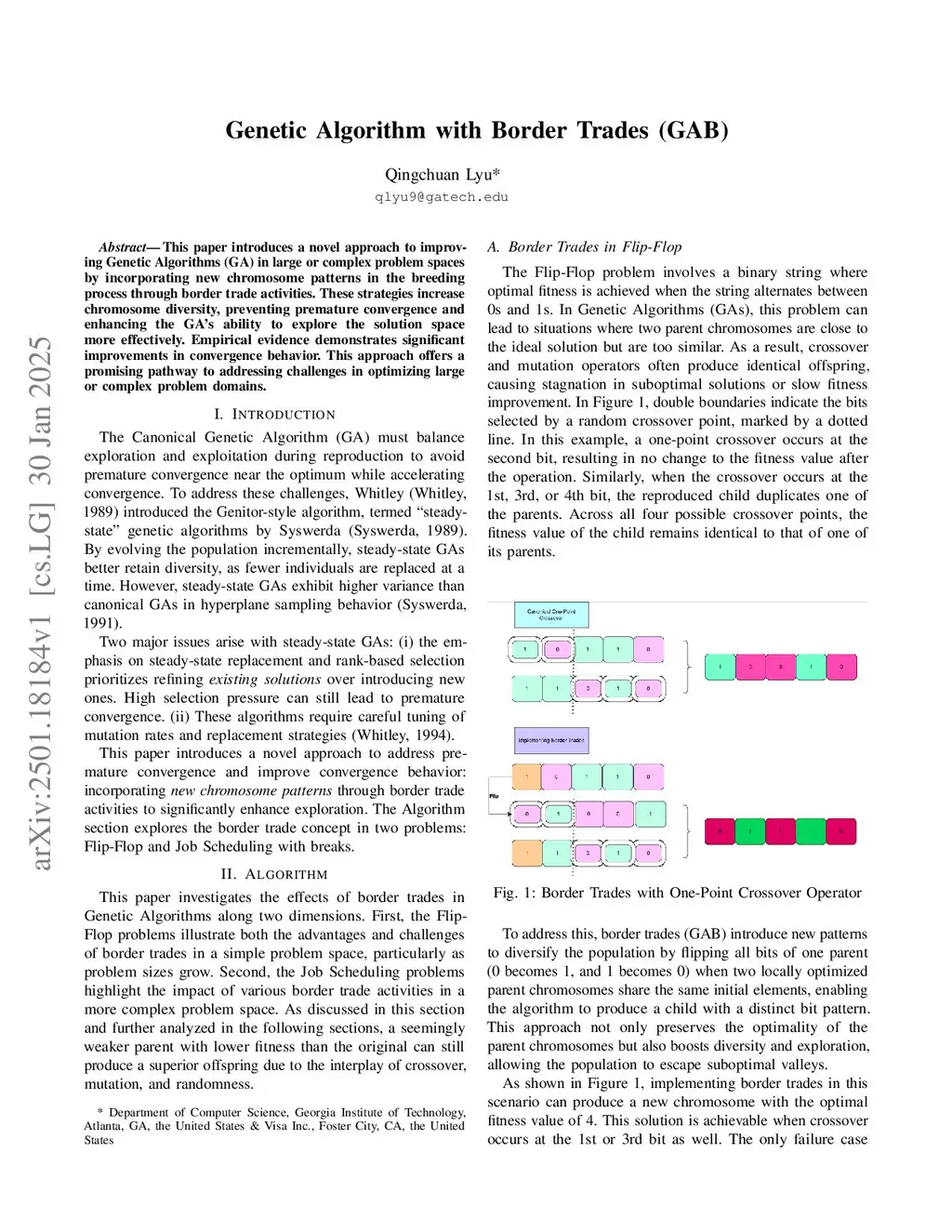 This paper proposes Genetic Algorithm with Border Trades (GAB), a novel modification of the standard genetic algorithm that enhances exploration by incorporating new chromosome patterns in the breeding process. This approach significantly mitigates premature convergence and improves search diversity. Empirically, GAB achieves up to 8x higher fitness and 10x faster convergence on complex job scheduling problems compared to standard Genetic Algorithms, reaching average fitness scores of 888 versus 106 in under 20 seconds. On the classic Flip-Flop problem, GAB consistently finds optimal or near-optimal solutions in fewer generations, even as input sizes scale to thousands of bits. These results highlight GAB as a highly effective and computationally efficient alternative for solving large-scale combinatorial optimization problems.
