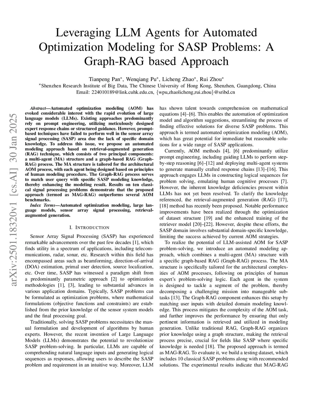 Leveraging LLM Agents for Automated Optimization Modeling for SASP Problems: A Graph-RAG based Approach