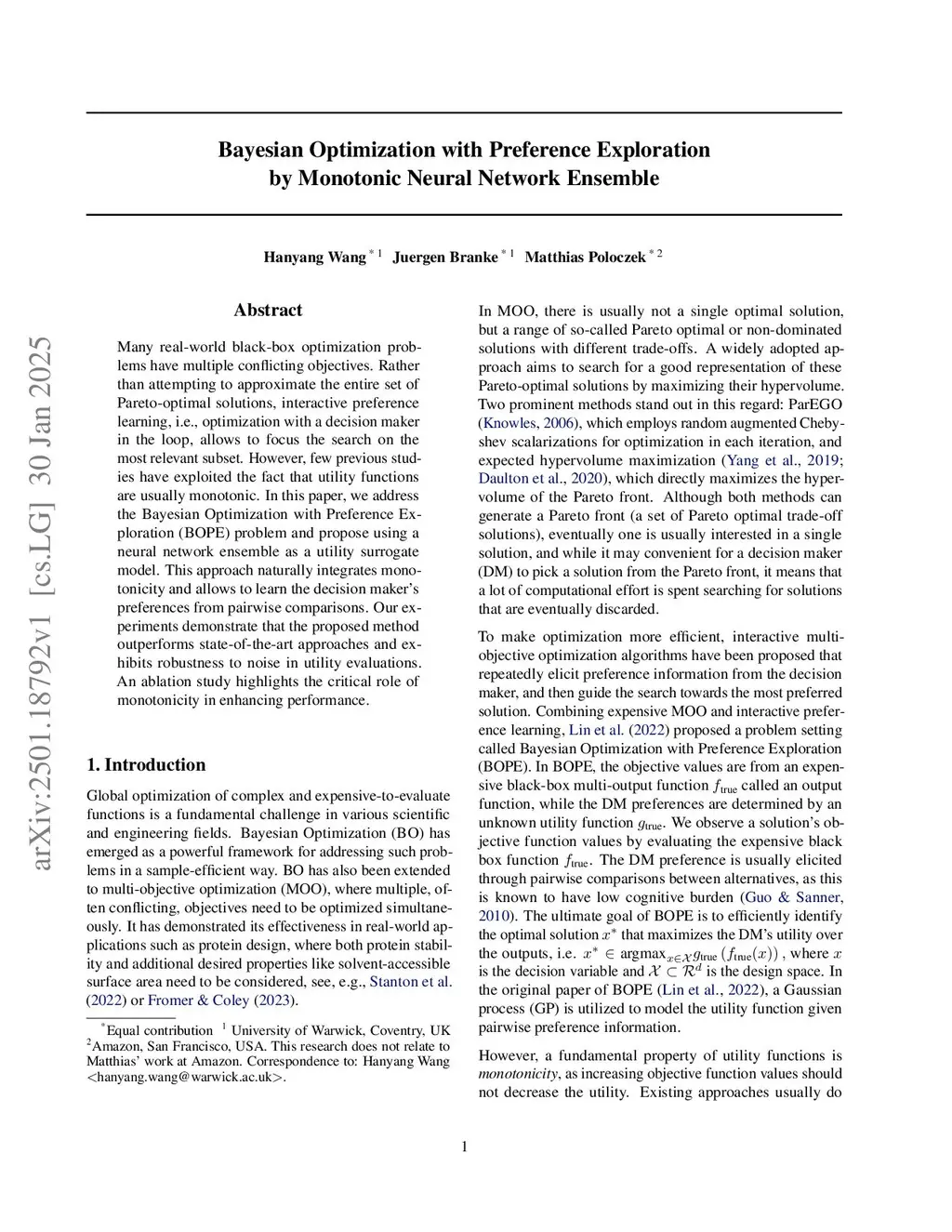 Bayesian Optimization with Preference Exploration using a Monotonic Neural Network Ensemble