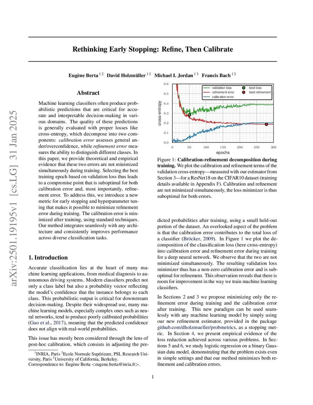 Machine learning classifiers often produce probabilistic predictions that are critical for accurate and interpretable decision-making in various domains. The quality of these predictions is generally evaluated with proper losses, such as cross-entropy, which decompose into two components: calibration error assesses general under/overconfidence, while refinement error measures the ability to distinguish different classes. In this paper, we present a novel variational formulation of the calibration-refinement decomposition that sheds new light on post-hoc calibration, and enables rapid estimation of the different terms. Equipped with this new perspective, we provide theoretical and empirical evidence that calibration and refinement errors are not minimized simultaneously during training. Selecting the best epoch based on validation loss thus leads to a compromise point that is suboptimal for both terms. To address this, we propose minimizing refinement error only during training (Refine,...), before minimizing calibration error post hoc, using standard techniques (...then Calibrate). Our method integrates seamlessly with any classifier and consistently improves performance across diverse classification tasks.